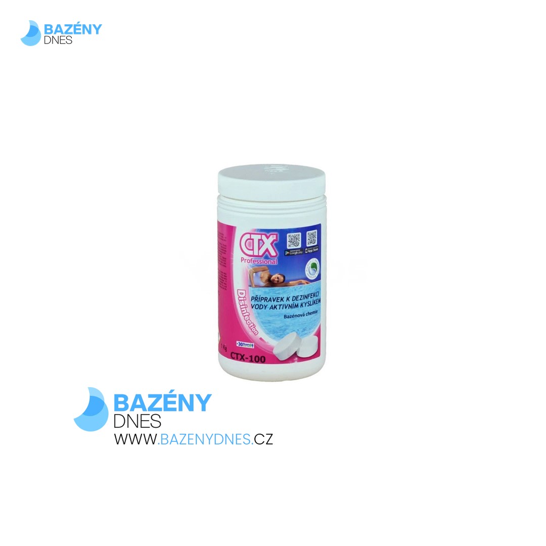 Kyslíková chemie pro bezchlórovou úpravu vody. 100g tablety bez obsahu chlóru.Tento kyslíkový přípravek je vhodný jako u chlórových tablet pro likvidaci bakterií a zabraňující tvorbě řas. Tento přípravek je nezbytné doplnit použitím přípravků CTX - 540 aktivátor O2, popřípadě flokulačními tabletami Flokulant (pro zvločkování drobných nečistot). Dezinfekce pomocí aktivního kyslíku a mikrobicidu má podobné účinky jako chlor (prudká oxidace), ale jeho použití je bez zápachu a dráždění sliznic. Vhodné použití je ve vířivých bazénech, vnitřních nebo venkovních bazénech a hlavně tam, kde je použití chloru nepříjemné či nežádoucí. Hodnota kyslíku by měla být 3 – 8 mg/l. Tato hodnota se kontroluje pomocí testovače viz. příslušenství/testovací soupravy.