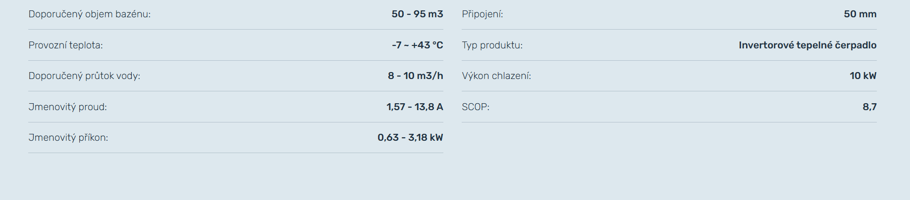 Když Rapid Inverter běží při střední nebo nízké rychlosti pro udržení teploty bazénu, je hlučnost kompresoru extrémně nízká. Rapid Inverter má v závislosti na velikosti bazénu efektivitu COP až 16 (při teplotě vzduchu 26°C, vody 26°C a vlhkosti vzduchu 80%)